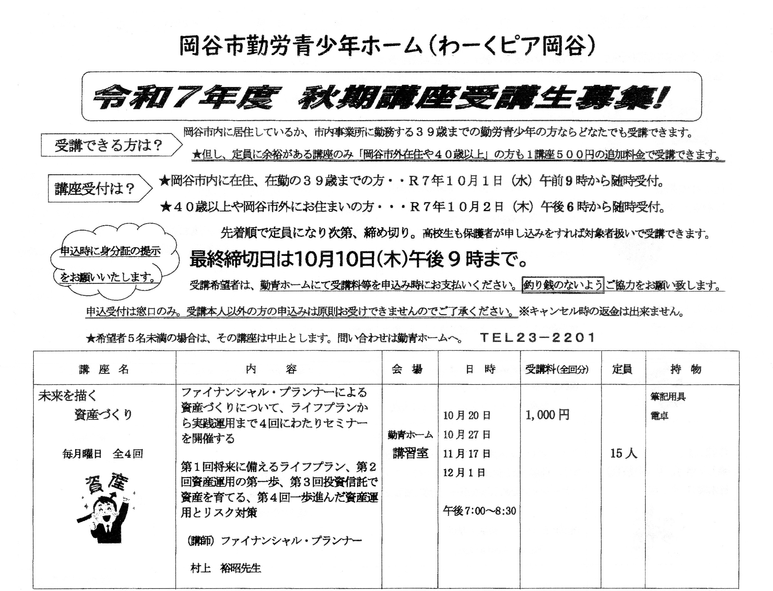令和7年度秋季講座「未来を描く資産づくり」セミナー
